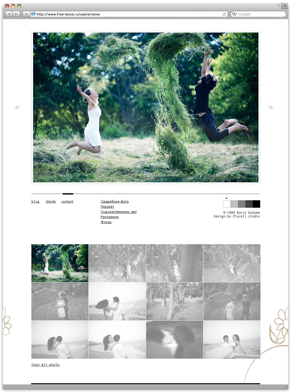 Дизайн сайта для профессионального фотографа Бориса Гудимы.