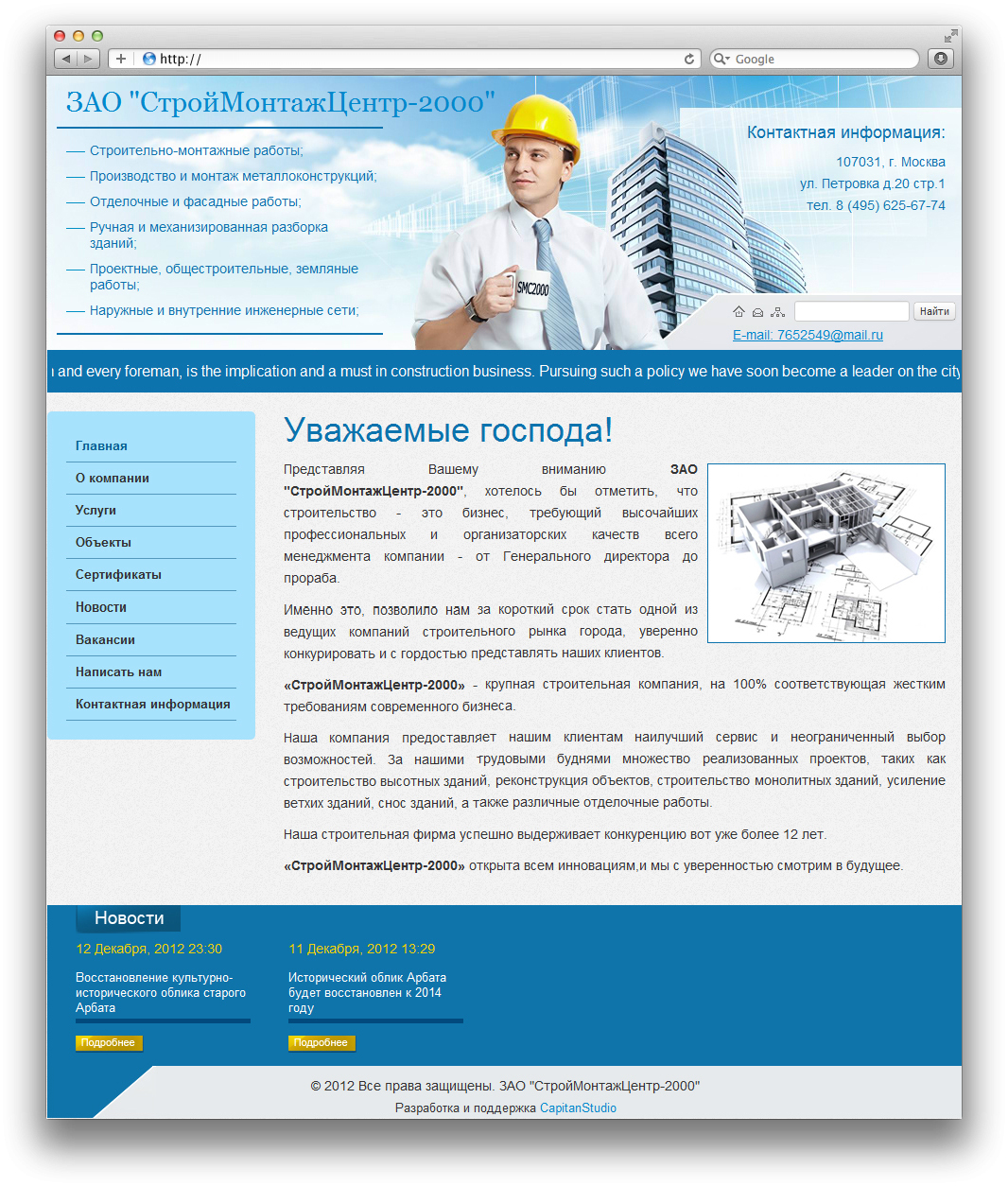 Сайт для ЗАО "СтройМонтажЦентр 2000"
